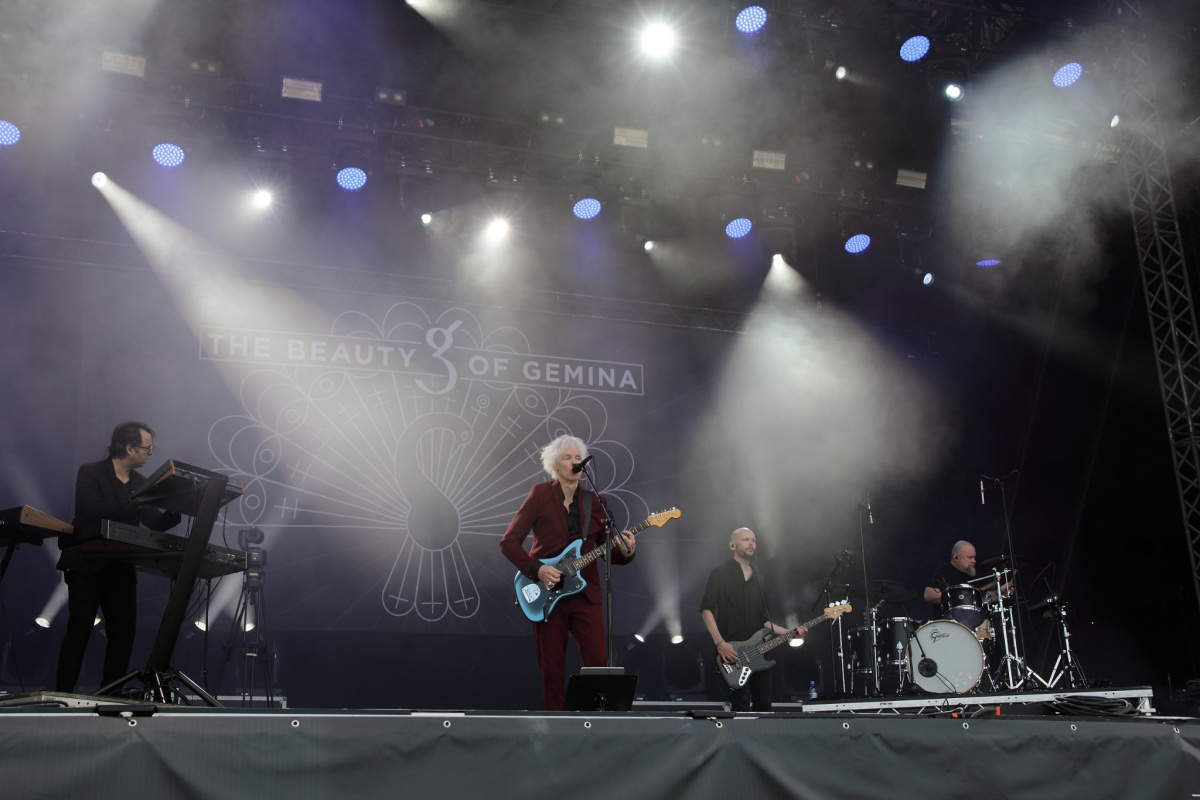 Tak když už jsme tedy vzhůru, jdeme se zkulturnit a hurá písničky. Sluneční gril je i v neděli zapnutý naplno, a tak je mi Michaela Seleho upřímně líto. The Beauty of Gemina vyfásli prostor v jednu hodinu odpoledne (a to ani nehráli první), kdy i návštěvníci měli co dělat, aby se přímému slunci vyhnuli. Že to s kapelou nešvihlo, a ještě to zvládli vlastně moc hezky odhrát a odzpívat, je takový malý zázrak. Kytarový aparát sice trochu zlobil, nicméně šum a brum byl naštěstí slyšet jen mezi písničkami a celkovému soundu to neublížilo. Došlo i na klavírní improvizace, šlapalo to svižně, a tak si černooděnci, snažící se v útržcích stínu neuhořet, u piva a handbrotů spokojeně podupávali platformou. Hezký set, všechna čest.
